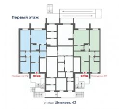Продается коммерческое помещение свободного назначения, расположенное по улице Александра Шмакова 42 (Помещение 1). Стремительно застраивающийся и развивающийся микрорайон. Собственный вход с улицы. К 2028 году планируется продолжение улицы Александра Шмакова, что переведет предлагаемый объект в локацию первой линии. Возможна продажа сразу двух помещений (отмечено на плане помещение 2 (97 кв. м.), имеет собственную входную группу).