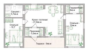 Общая площадь дома: 69 м²