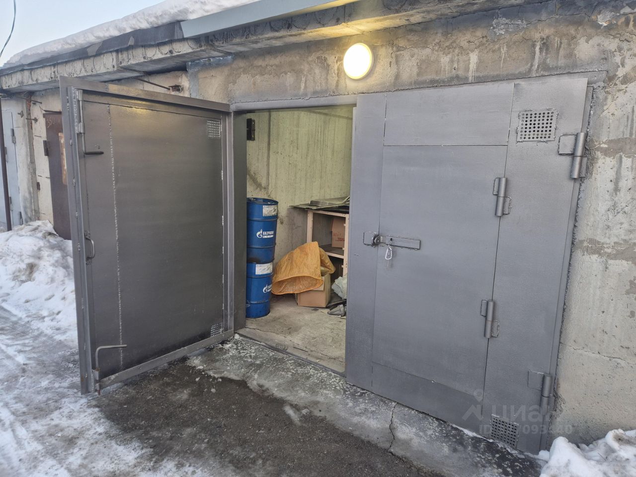 50 метров от поста охраны, прямая видимость. Виденаблюдение по всему гаражному кооперативу.
