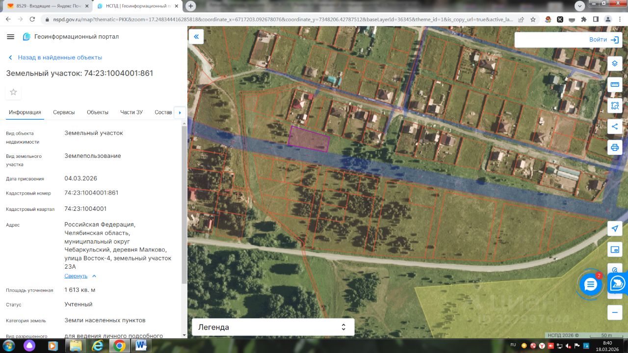 Лот 3: Предметом торгов является земельный участок из земель населенных пунктов с кадастровым номером 74:23:1004001:861, расположенный по адресу: Российская Федерация, Челябинская область, муниципальный округ Чебаркульский, деревня Малково, улица Восток-4, земельный участок 23А, вид разрешенного использования: для ведения личного подсобного хозяйства (приусадебный земельный участок), площадью 1613 кв.м, ограничения, обременения в использовании земельного участка отсутствуют.