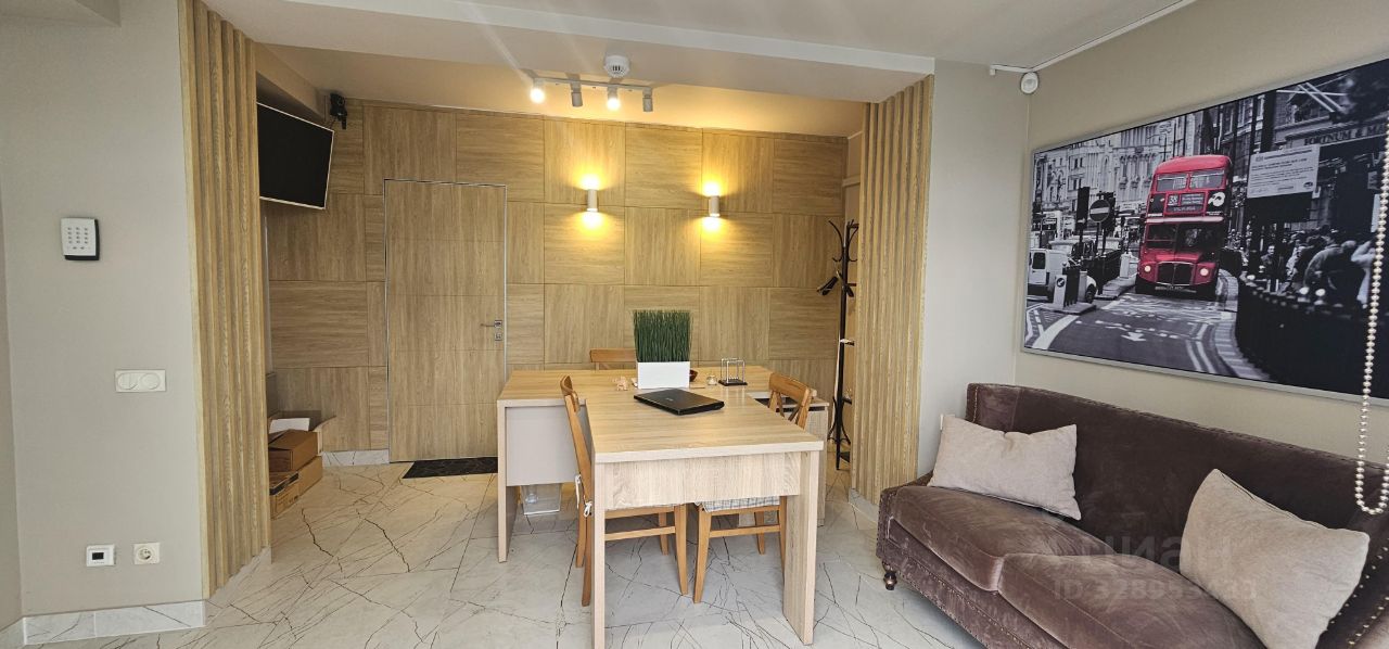 В помещении: отдельный офисный кабинет (служебный вход со стороны двора) с панорамным остеклением-14 м2, зал-19 м2, кухонная зона-17 м2, холодильная камера-6 м2, с/узел - 4 м2, холл-6,5 м2.