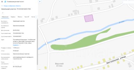 Земельный участок, общей площадью 1018 кв.м., с кадастровым номером 74:34:0912001:783, расположенный по адресу: Челябинская обл., Миасский городской округ, п. Верхний Атлян, ул. Советская, напротив участков 37 и 39, разрешенное использование для индивидуального жилищного строительства, категория земель: земли населенных пунктов.