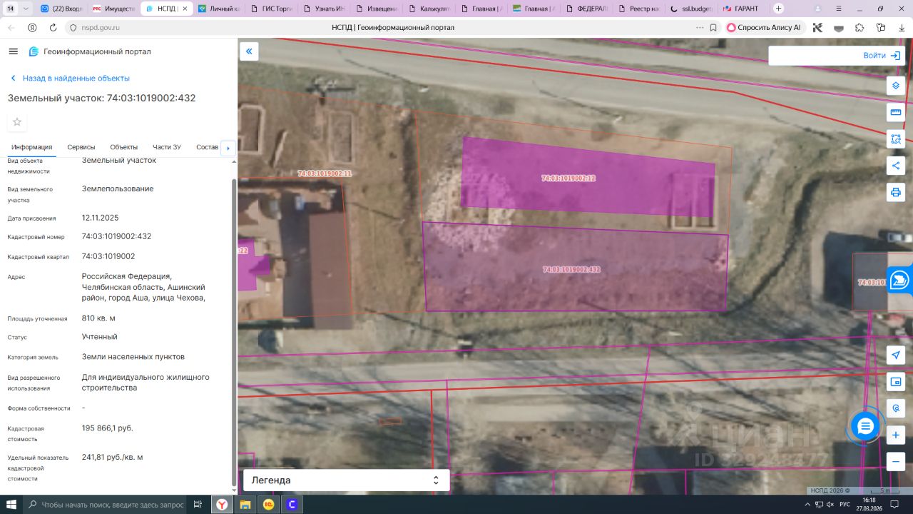 Земельный участок с кадастровым номером 74:03:1019002:432, площадь 810, расположенный по адресу: Российская Федерация, Челябинская область, Ашинский район, город Аша, улица Чехова, земельный участок 1В