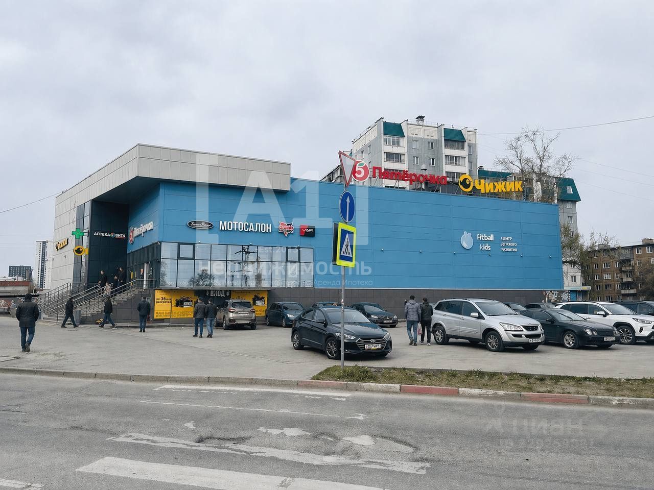 В здании работает также Мотосалон, Пятерочка, аптека Вита.