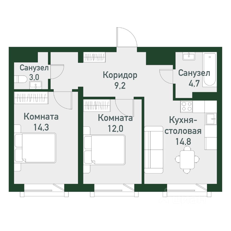 Продаётся студия + 2 спальни общей площадью 58,10 кв.м. в загородном районе комфорт-класс "ТвояПривилегия". Он расположен в перспективной локации города с точки зрения экологии, далеко от производств на берегу Шершневского водохранилища, в 20 минутах от центра Челябинска.