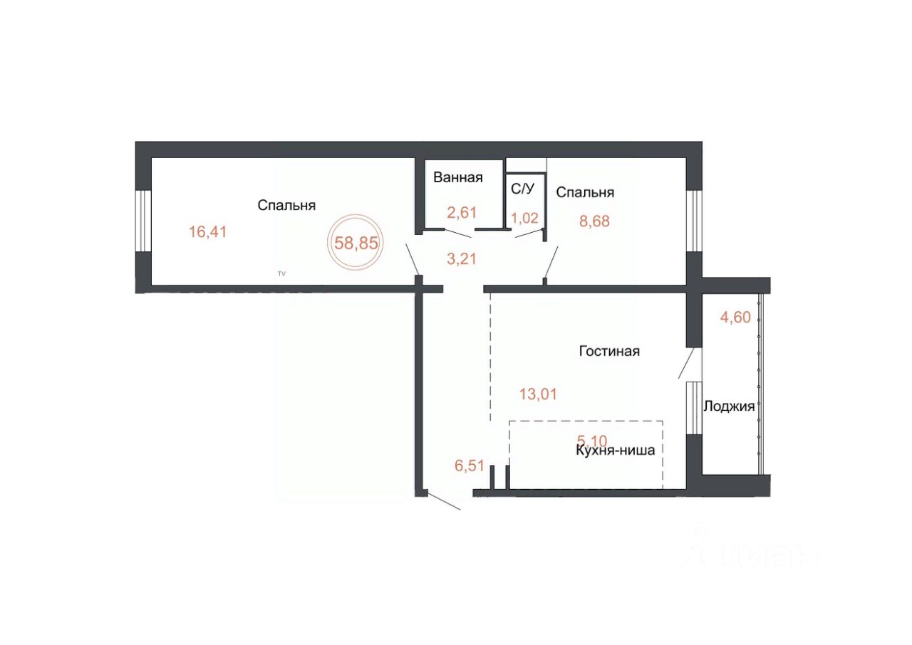 Общая площадь58,85 м²