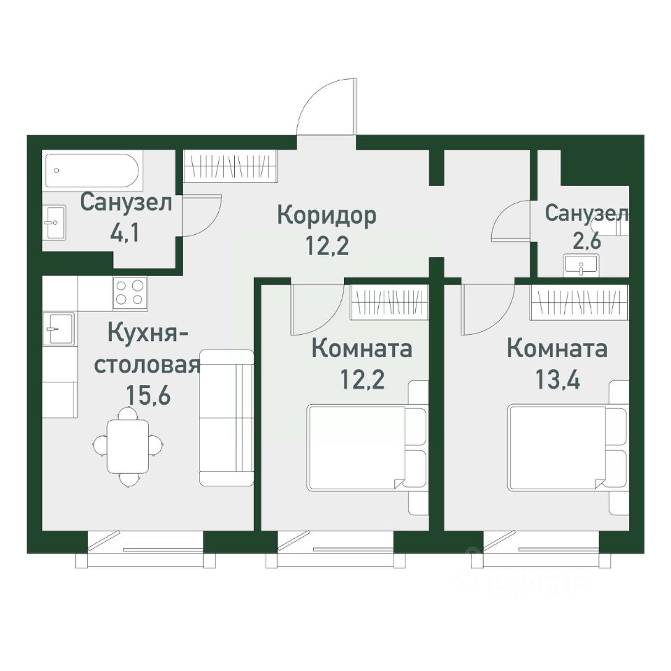 Продаётся студия + 2 спальни общей площадью 58,20 кв.м. в загородном районе комфорт-класс "ТвояПривилегия". Он расположен в перспективной локации города с точки зрения экологии, далеко от производств на берегу Шершневского водохранилища, в 20 минутах от центра Челябинска.