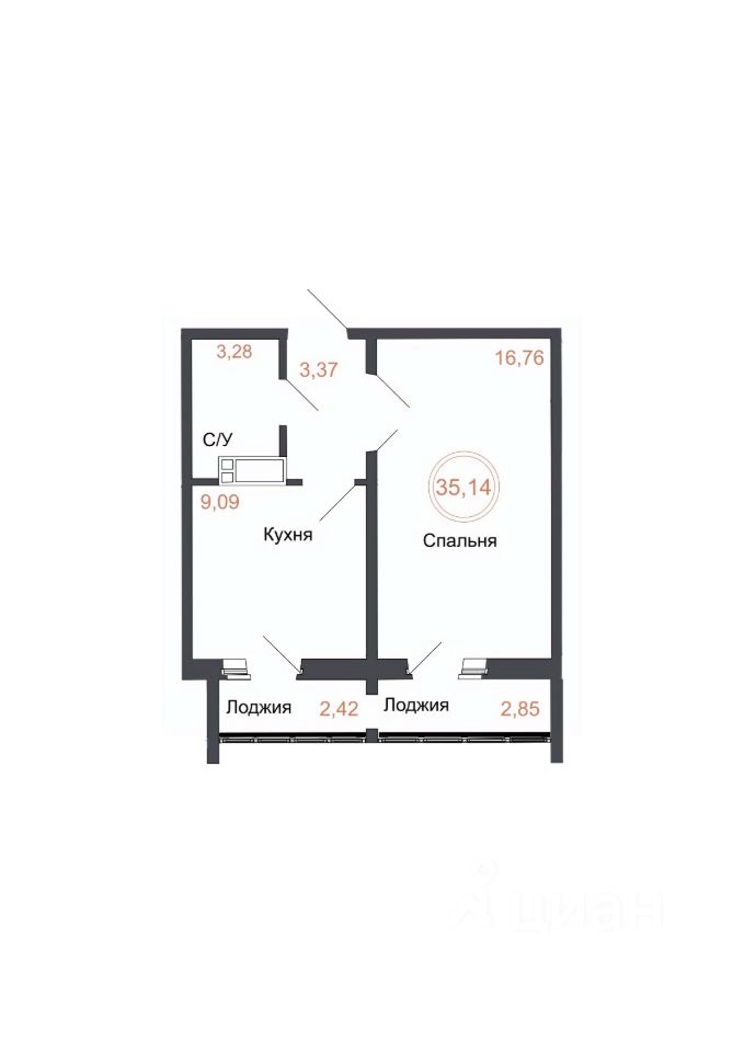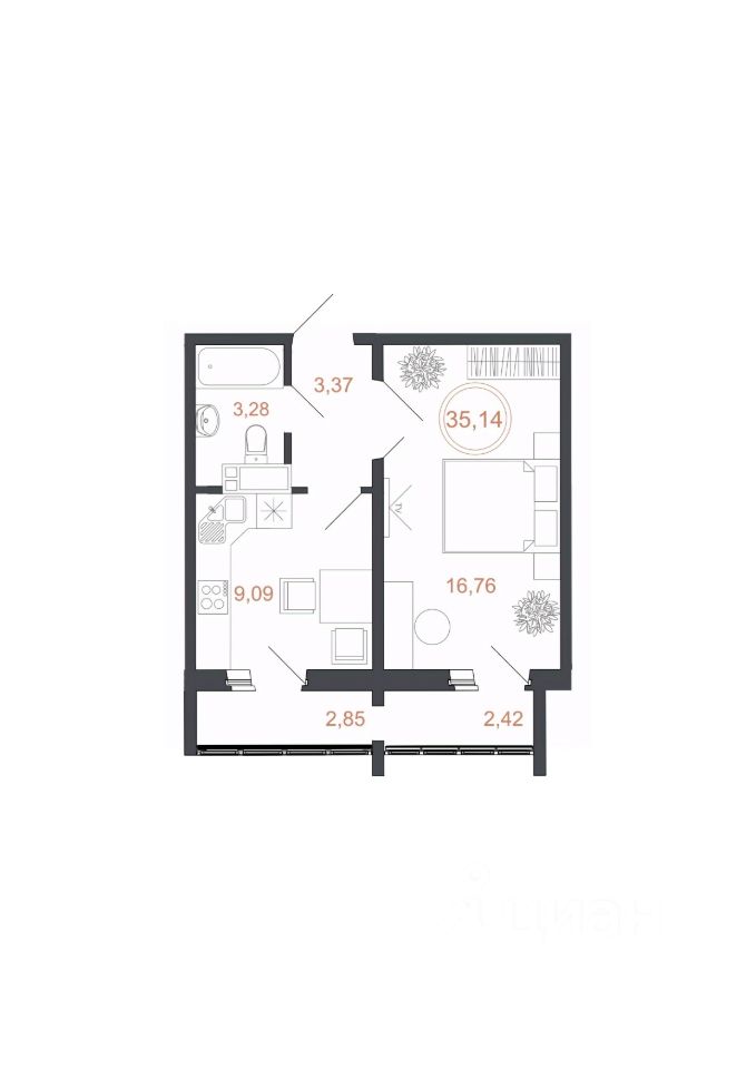 Общая площадь35,14 м²