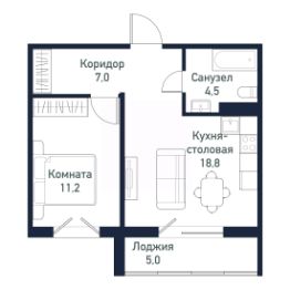 Квартира от застройщика - студия + 1 спальня, площадью 40,46 кв.м.