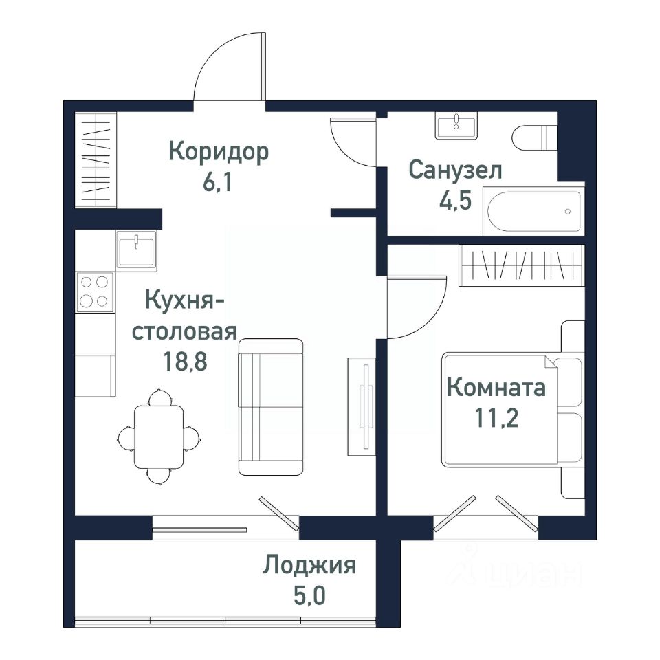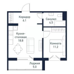 Квартира от застройщика - студия + 1 спальня, площадью 40,50 кв.м.