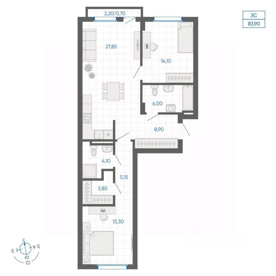 Общая площадь83,9 м²