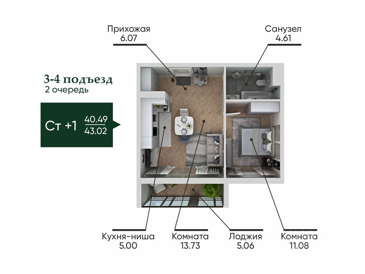 ЖК "Ильменский" открывает продажи! квартира 132, общей площадью 43,02 на 5 этаже.