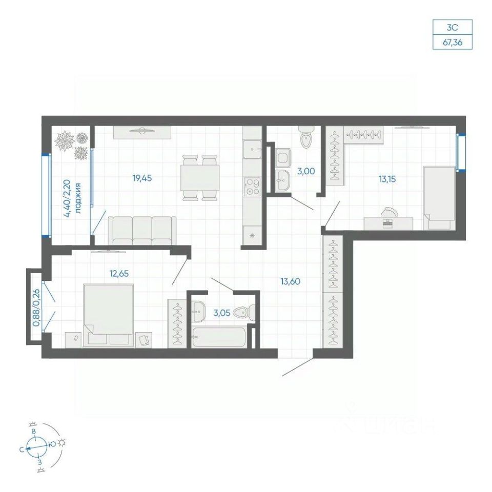 Общая площадь67,36 м²