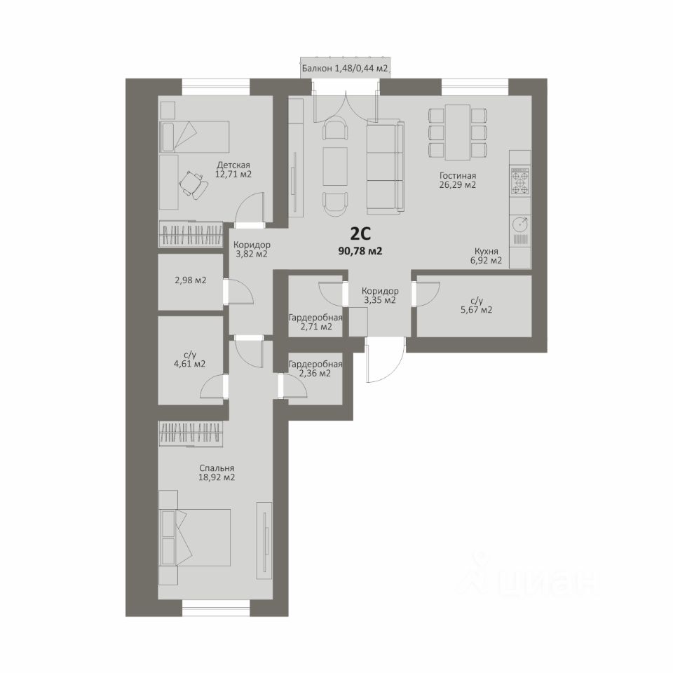 Продаётся 2-комнатная квартира в строящемся доме (Дом 2 стр.), срок сдачи: II-кв. 2026, общей площадью 90 кв.м., на 2 этаже. Новый жилой комплекс "Эстетика" от Специализированного застройщика "МС-Инвест" расположен по адресу: г. Челябинск, пос. Красное поле, по ул. Белопольского.