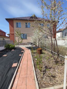 Территория благоустроена, есть теплица, бак еврокуб для полива, ели, туи, вишня, яблоня, черешня, смородина, малина, цветы и пр.