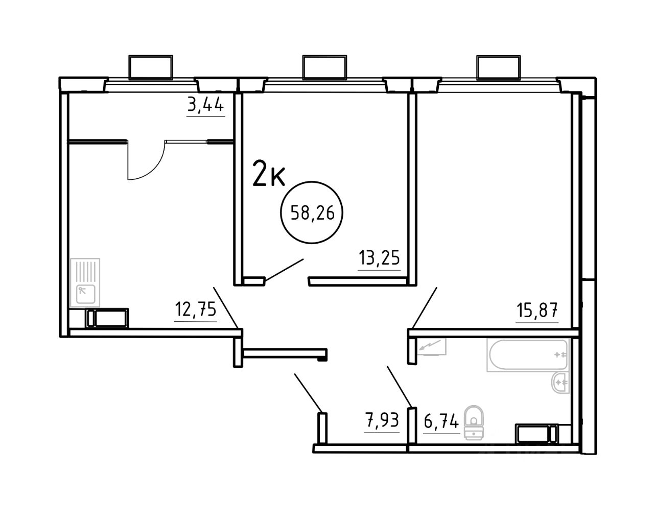 Продаётся 2-комнатная квартира в строящемся доме (Дом 2.3.1), срок сдачи: III-кв. 2027, общей площадью 58.26 кв.м., на 2 этаже. Жилой комплекс "Симфония" - гармония внутри, гармония снаружи.