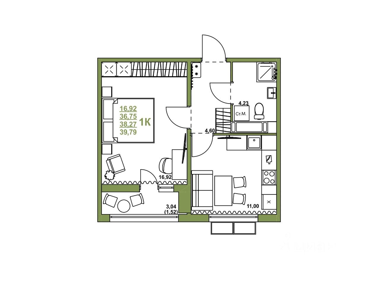 Продаётся 1-комнатная квартира в строящемся доме (Дом 2.3.1), срок сдачи: III-кв. 2027, общей площадью 38.27 кв.м., на 3 этаже. Жилой комплекс "Симфония" - гармония внутри, гармония снаружи.