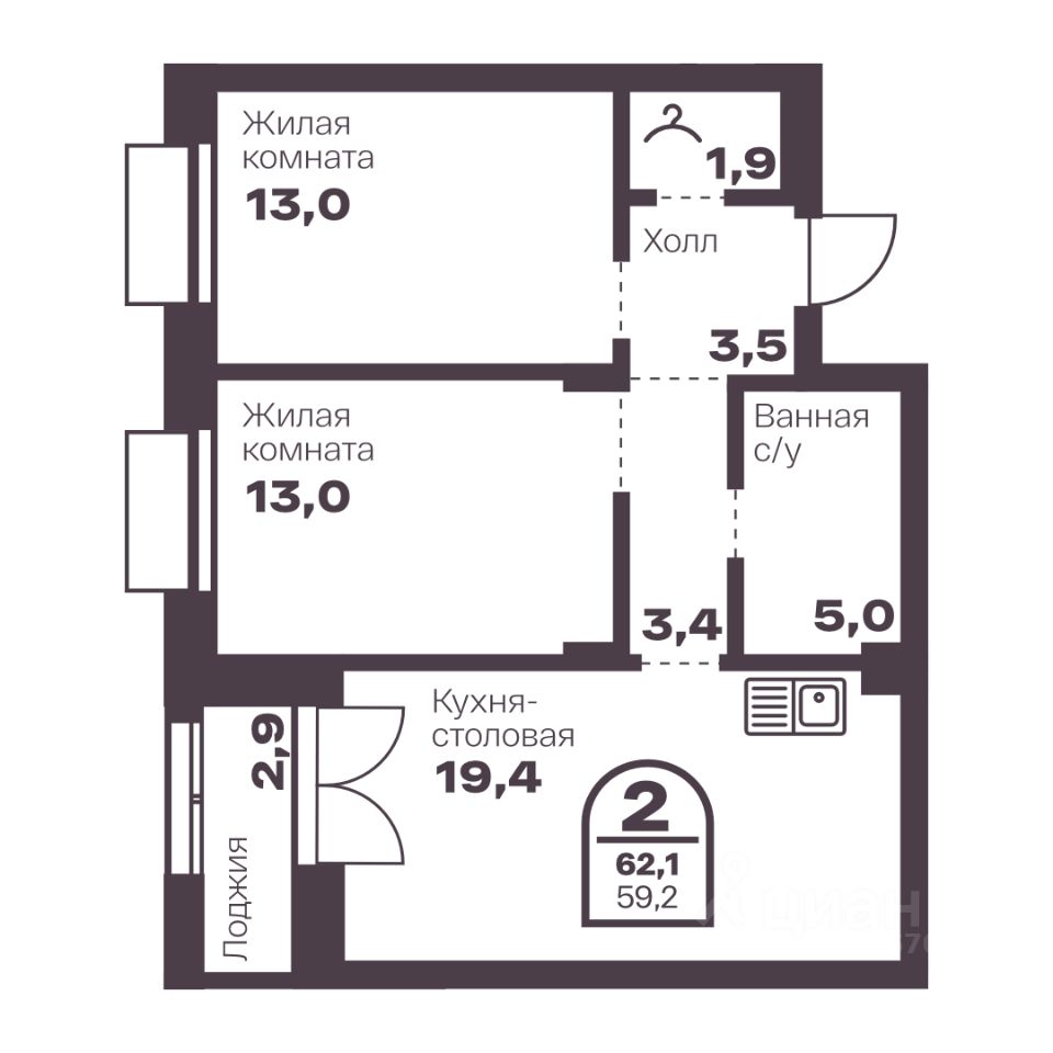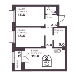 Общая площадь59,2 м²
