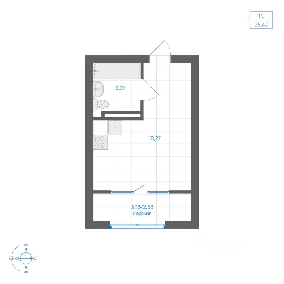 Общая площадь25,42 м²