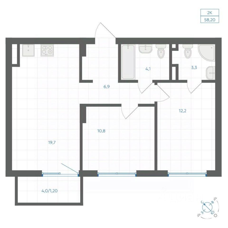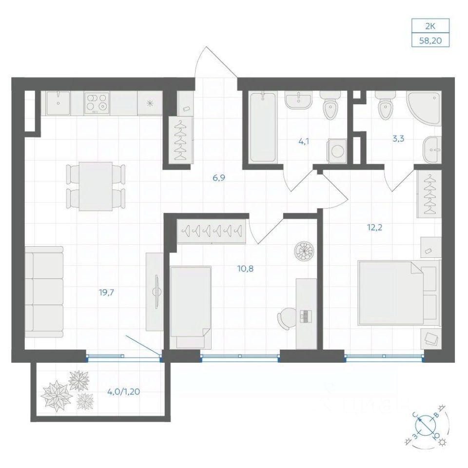 Общая площадь58,2 м²