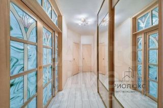 * В квартире сделан ремонт с элементами эксклюзивности. В зале установлены витражи, выполненные техникой Тиффани в натуральном дереве. В коридоре - встроенный большой шкаф с зеркалами.