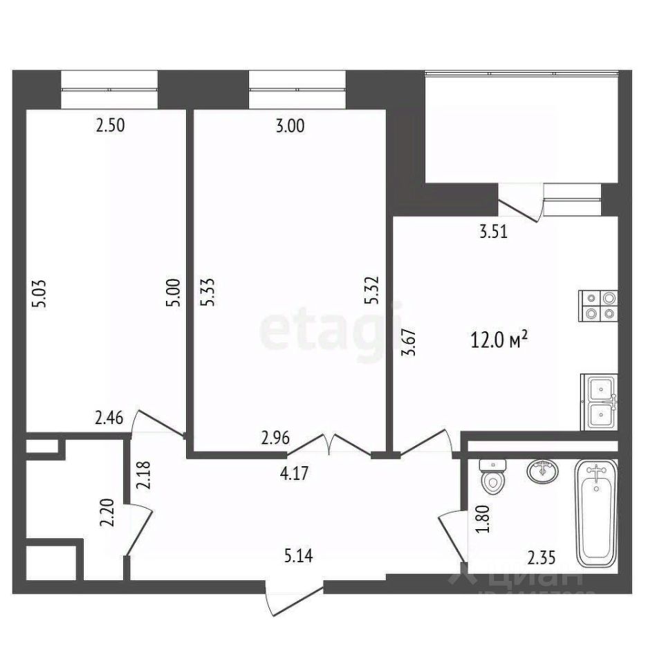 Кухня-12 метров, из нее выход на ЛОДЖИЮ- 4 м зимой тепло, можно использовать как кабинет.