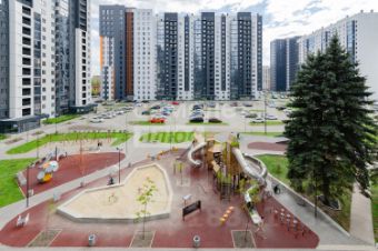 Это современный Жилой комплекс с охраняемой и огороженной территорией, детскими и спортивными площадками разнообразной формы, с площадками для выгула собак, пешеходными зонами
