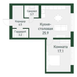 Продаётся студия + 1 спальня общей площадью 56,46 кв.м. в загородном районе комфорт-класс "ТвояПривилегия". Он расположен в перспективной локации города с точки зрения экологии, далеко от производств на берегу Шершневского водохранилища, в 20 минутах от центра Челябинска.