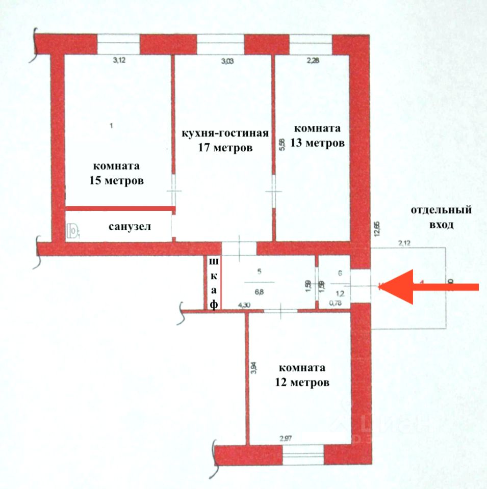 Предлагаем к продаже трехкомнатную квартиру в многоквартирном доме с отдельным входом!