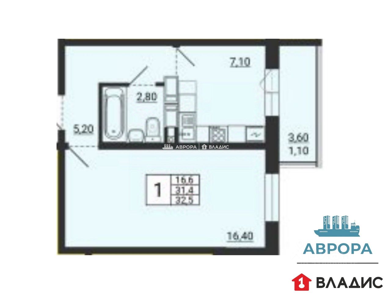 В продаже компактная однакoмнатная квартира 32,5 кв.м. ждёт счастливых обладателей!