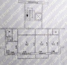 Kуxня-гостиная 18,2 кв.м., 3 изолированные комнаты площадью 12,2 кв.м, 12 кв,м, и 9 кв,м, есть отдельная вместительная гардеробная 4 кв.м.