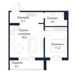 Квартира от застройщика - студия + 1 спальня, площадью 40,20 кв.м.