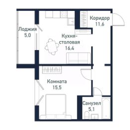 Продается студия + 1 спальня площадью 48,50 кв.м.