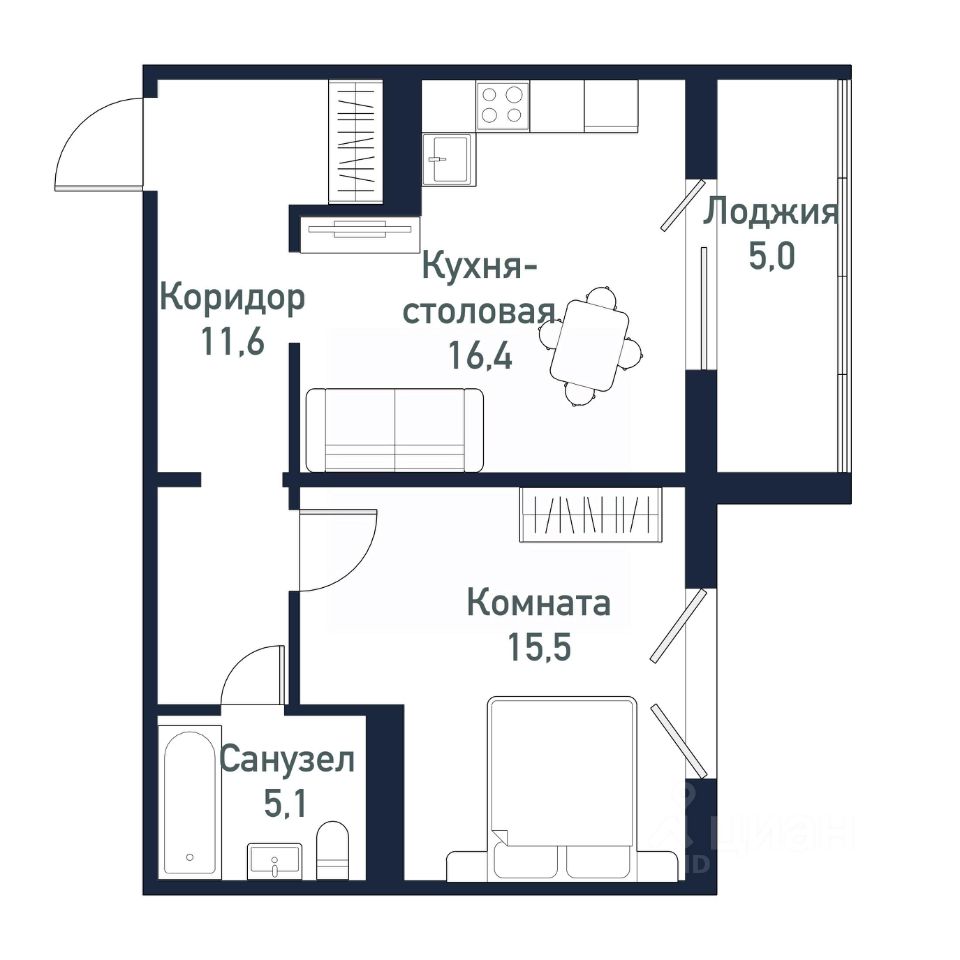 Общая площадь48,5 м²