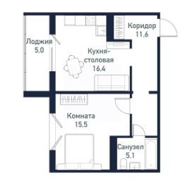 Продается студия + 1 спальня площадью 48,30 кв.м.
