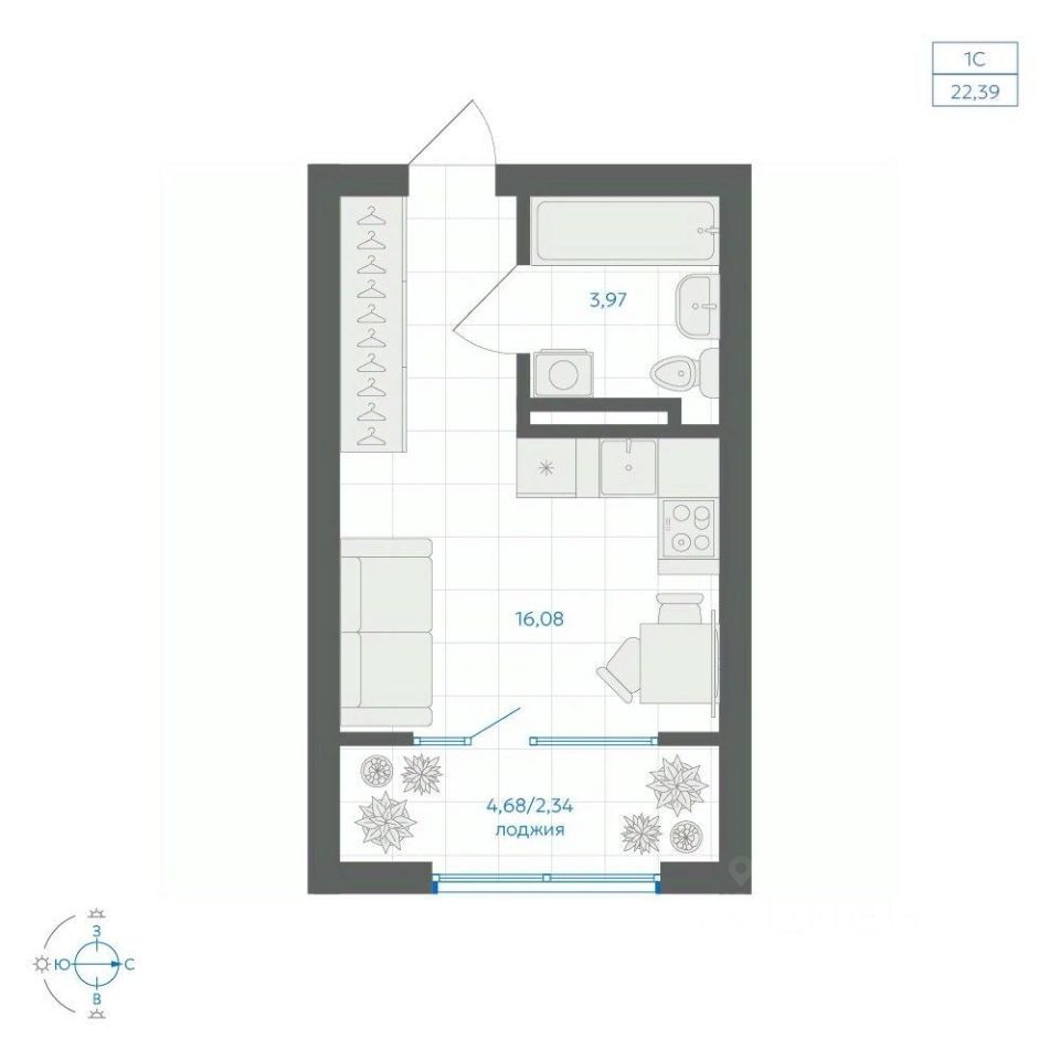 Общая площадь22,39 м²
