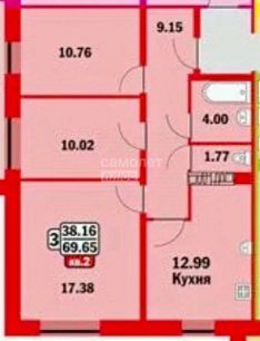 Общая площадь 66,3 кв.м