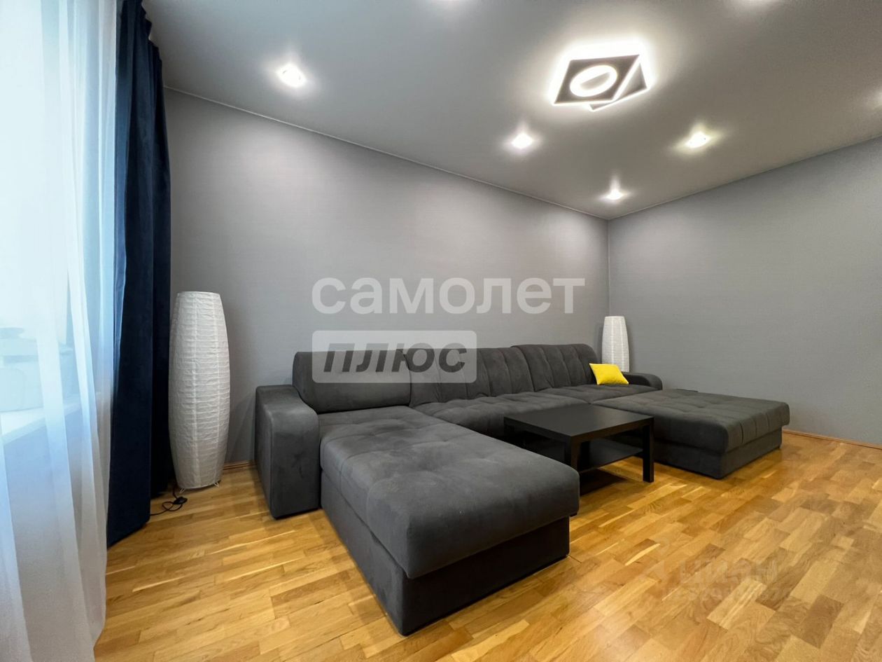 По всей квартире (кроме санузла) уложена двухслойная паркетная доска, устойчивая к влаге и температурным изменением. На кухне, в детской и спальной комнате потолки "под яйцо". В прихожей, коридоре и гостиной натянут матовый потолок.