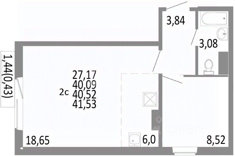 Удобная планировка: изолированная комната, коридор с нишей под шкаф, раздельный санузел, кухня с выходом на балкон.