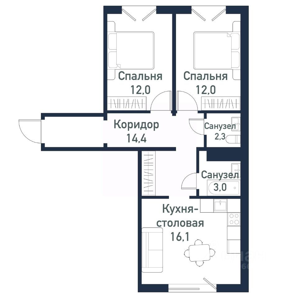 Продаётся студия + 2 спальни общей площадью 59,78 кв.м. в загородном районе комфорт-класс "ТвояПривилегия". Он расположен в перспективной локации города с точки зрения экологии, далеко от производств на берегу Шершневского водохранилища, в 20 минутах от центра Челябинска.