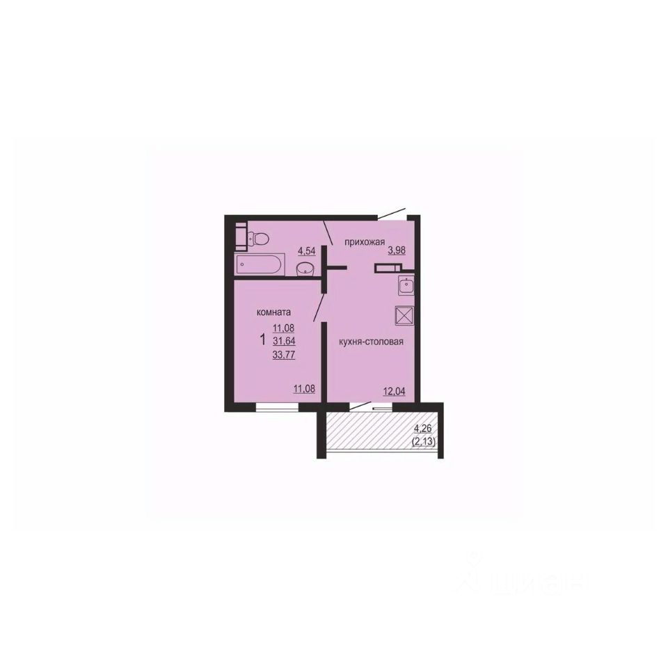Общая площадь33,77 м²