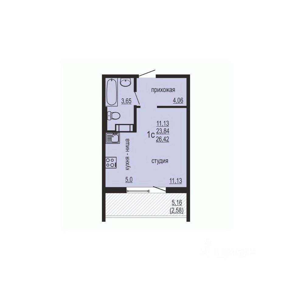 Общая площадь26,42 м²