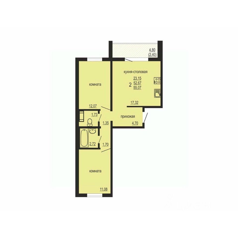Общая площадь55,07 м²