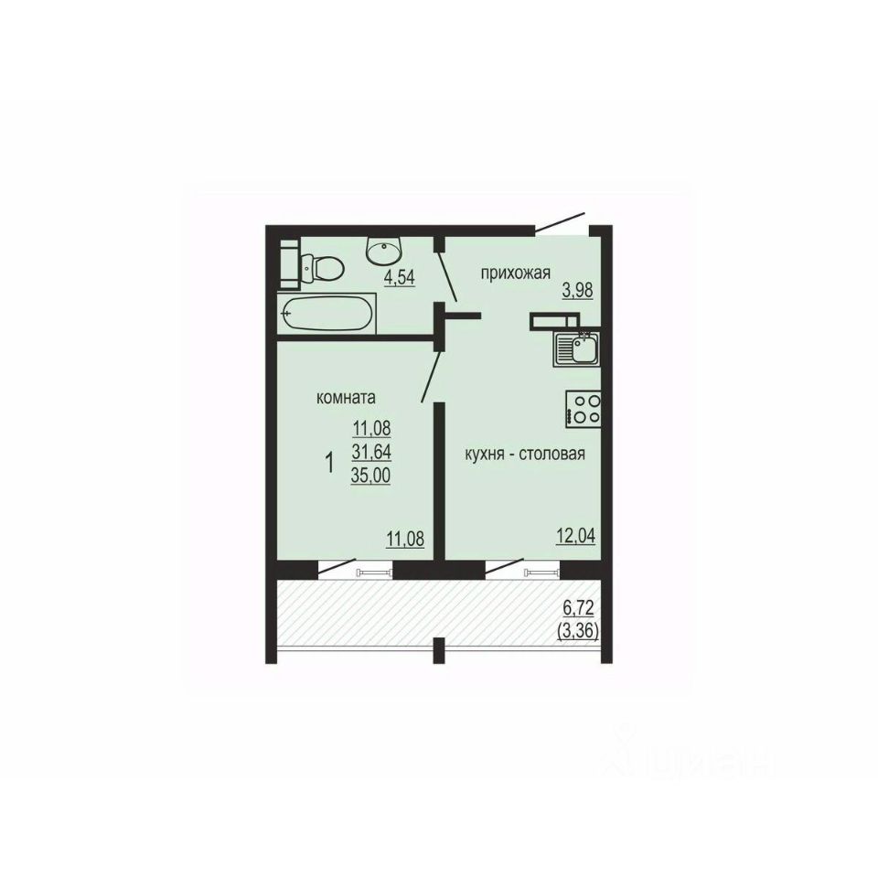 Общая площадь35 м²