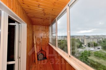 Большая лоджия застеклена и отделана деревом.