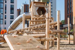 - каждый двор организован согласно концепции "парк во дворе", что включает в себя большие тематические игровые площадки, велосипедные дорожки и спортивные комплексы;