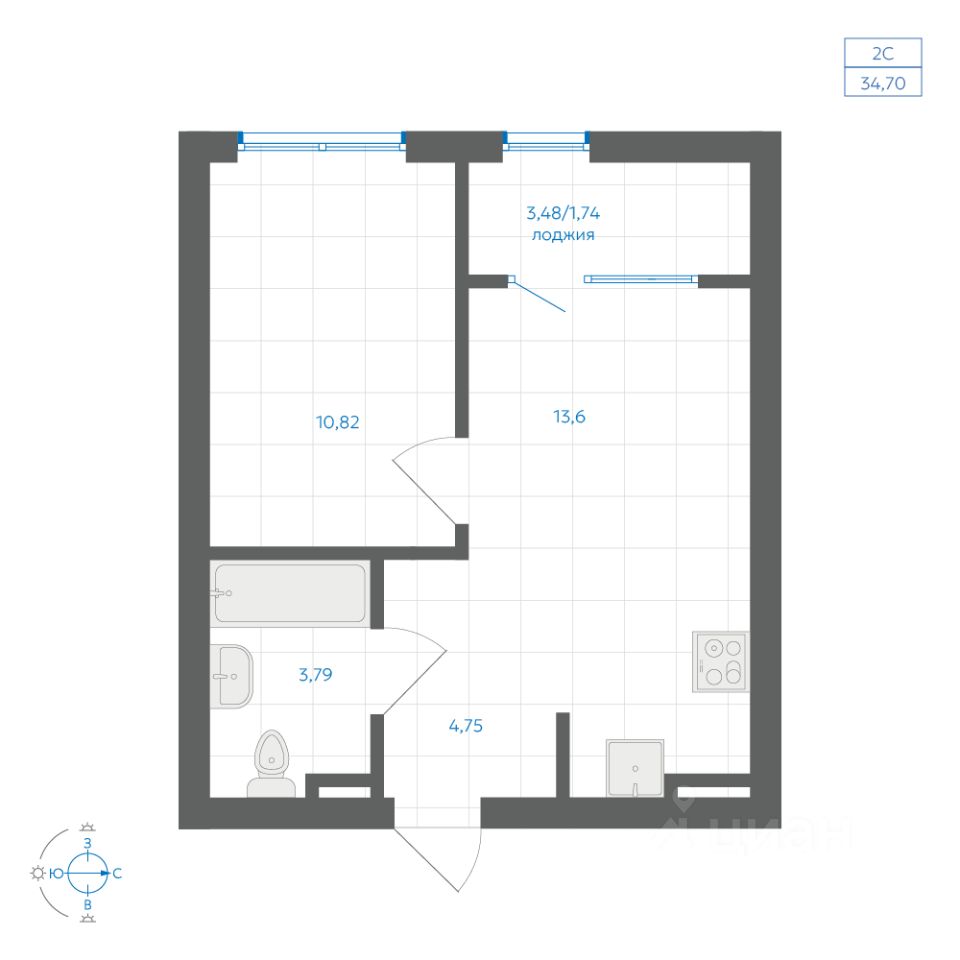 Общая площадь34,7 м²