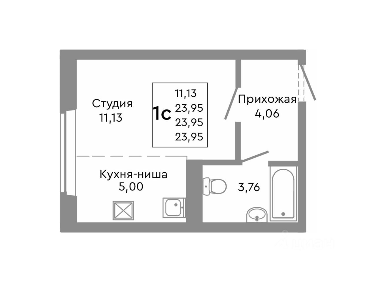 23,95 м²