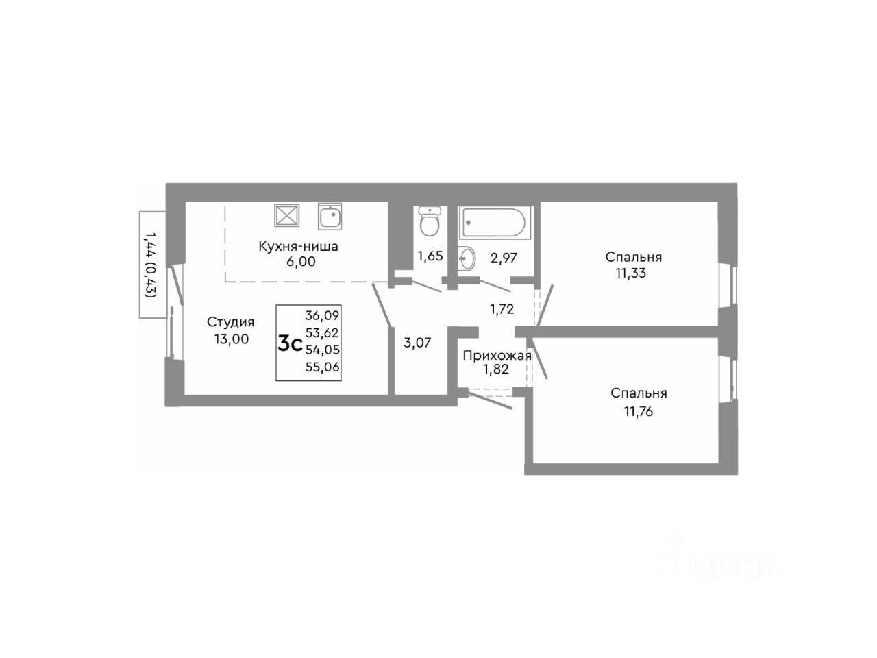 54,05 м²