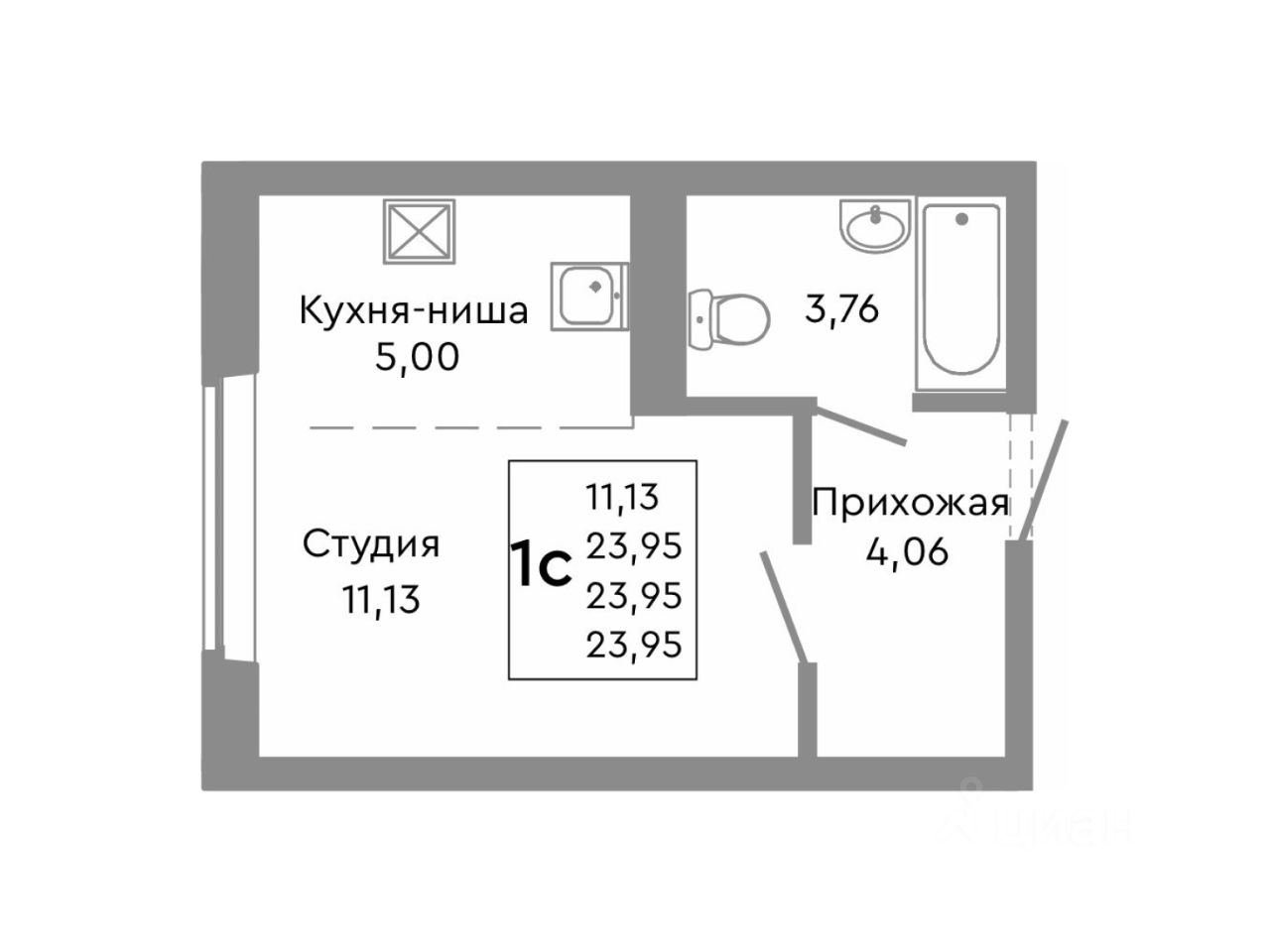 23,95 м²